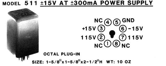The Model 511 ±15V @ ±300mA Power Supply is a logic module with Octal Plug-in.