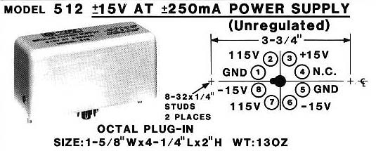 The Model 512 ±15V @ ±250mA Bipolar Power Supply is a logic module with Octal Plug-in. This model is Unregulated.
